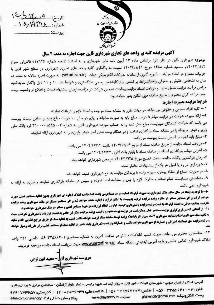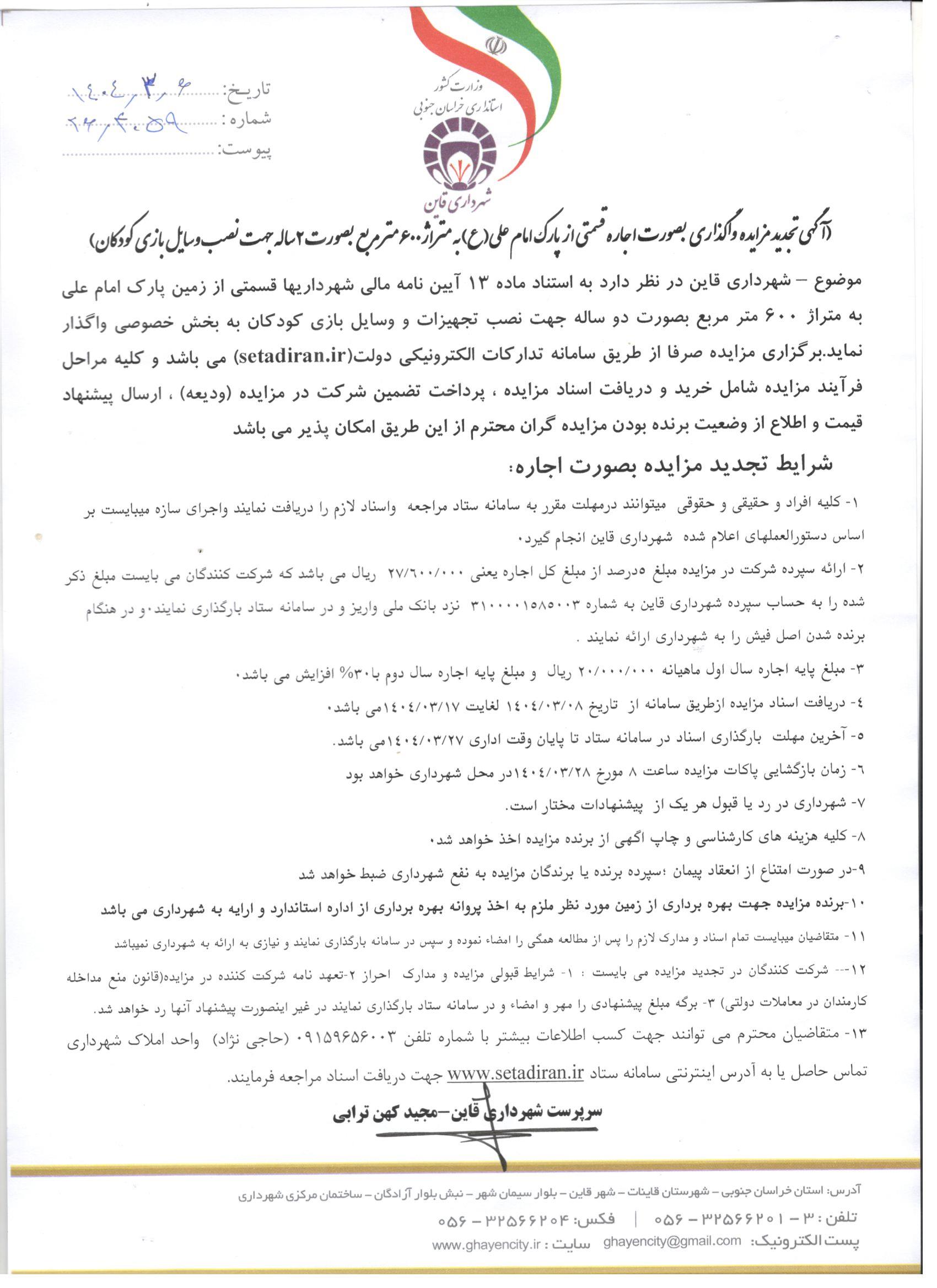 " روابط عمومی شهرداری و شورای اسلامی شهر قاین "