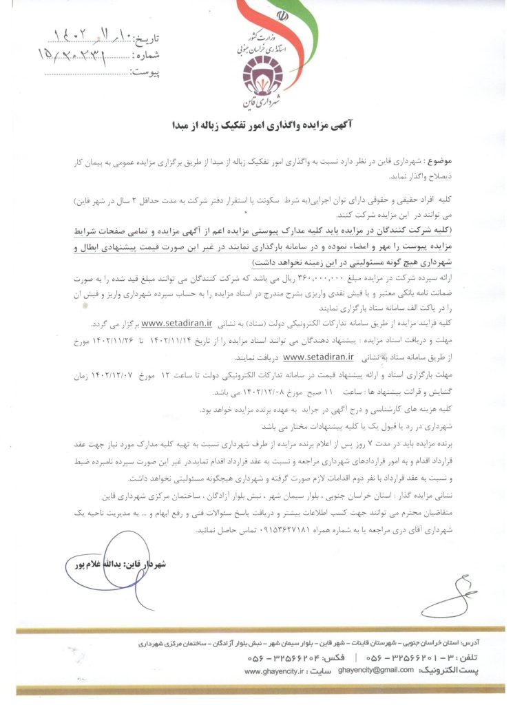 آگهی مزایده واگذاری امور تفکیک زباله از مبدا